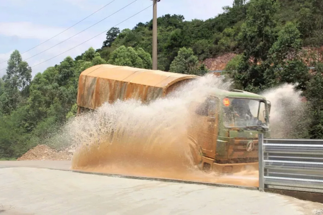 運輸車駛出水障礙路段