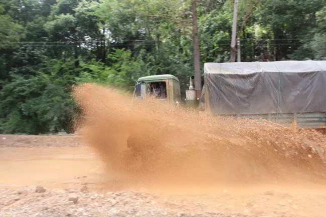 運輸車通過沙土路