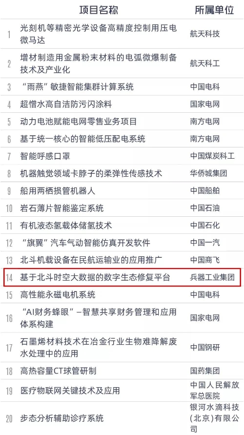 兵器工業(yè)集團(tuán)獲獎(jiǎng)項(xiàng)目