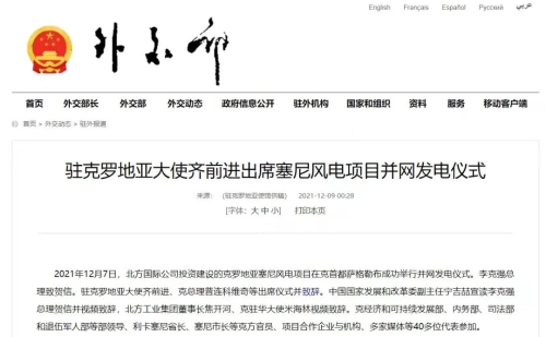 2021年12月7日,中國兵器工業(yè)集團有限公司北方公司所屬北方國際投資、建設(shè)和運營的塞尼156MW風(fēng)電項目在克羅地亞首都薩格勒布隆重舉行并網(wǎng)發(fā)電儀式。李克強總理致賀信??肆_地亞總理安德烈·普連科維奇,中國駐克羅地亞大使齊前進出席儀式并致辭。中國國家發(fā)展和改革委員會副主任寧吉喆宣讀李克強總理賀信并視頻致辭,中國兵器工業(yè)集團有限公司董事長焦開河、克駐華大使米海林視頻致辭。 中華人民共和國外交部報道 普連科維奇總理在致辭中表示,感謝李克強總理發(fā)來賀信,他與中國領(lǐng)導(dǎo)人一直非常重視塞尼風(fēng)電項目投資與建設(shè)。祝賀項目克服疫情與地震等影響,成功并網(wǎng)發(fā)電。增加清潔可再生能源、綠色電力對克乃至歐洲都很重要,克政府的重要戰(zhàn)略和目標(biāo)之一就是低碳發(fā)展和增加清潔能源供應(yīng)。塞尼風(fēng)電項目占克總發(fā)電量將達3.5%,對克實現(xiàn)2022年可再生能源比例30%目標(biāo)具有很大幫助。此次投資使北方國際成為在克最大的清潔能源投資企業(yè)。非常歡迎更多中國企業(yè)擴大對克投資。 寧吉喆宣讀李克強總理賀信并視頻致辭時表示,2017年11月第六次中國—中東歐國家領(lǐng)導(dǎo)人會晤期間,在李克強總理和普連科維奇總理等中東歐16國領(lǐng)導(dǎo)人的共同見證下,塞尼項目簽署了協(xié)議。項目既是中國堅定踐行綠色發(fā)展理念的具體體現(xiàn),也是中國深化與克羅地亞、與中東歐國家務(wù)實合作的生動實踐。希望中克兩國政府部門,企業(yè)等有關(guān)各方共同努力、相互配合,運營好塞尼項目,打造出中歐綠色合作的樣板,帶動兩國務(wù)實合作持續(xù)深入發(fā)展,造福兩國人民。 焦開河在致辭時表示,在塞尼項目投入運營之際,李克強總理專門致信祝賀。作為塞尼項目的投資方、建設(shè)方、運營方,我們備受鼓舞,深感自豪!未來,中國兵器工業(yè)集團有限公司將繼續(xù)深入貫徹落實習(xí)近平總書記重要指示批示精神和李克強總理賀信重要要求,以高標(biāo)準(zhǔn)、可持續(xù)、惠民生為目標(biāo),與克方合作伙伴坦誠溝通、攜手并進,進一步推動綠色能源建設(shè),努力打造更多的“一帶一路”標(biāo)志性、引領(lǐng)性、示范性項目,為鞏固中克戰(zhàn)略合作伙伴關(guān)系、推進中克從經(jīng)貿(mào)領(lǐng)域到全方位合作貢獻積極力量。 齊前進祝賀塞尼風(fēng)電項目順利完工和成功并網(wǎng)發(fā)電。他表示,塞尼風(fēng)電站項目并網(wǎng)發(fā)電是中克兩國領(lǐng)導(dǎo)人親自關(guān)注和推動的成果。作為迄今最大的中國在克投資合作項目,塞尼風(fēng)電項目是中克和中歐綠色合作的典范,對克提高清潔能源生產(chǎn)消費發(fā)揮著重要作用。項目建設(shè)過程中為當(dāng)?shù)嘏囵B(yǎng)了許多工程、技術(shù)和管理人才,帶動了當(dāng)?shù)仄髽I(yè)發(fā)展,增加了就業(yè)和稅收,促進了當(dāng)?shù)亟?jīng)濟社會發(fā)展,充分體現(xiàn)了中國對外經(jīng)貿(mào)合作與“一帶一路”倡議秉持的互利共贏、共同發(fā)展的理念,也是中國積極倡導(dǎo)的綠色低碳發(fā)展合作的典范。 塞尼項目位于克羅地亞中部亞得利亞海沿岸,建設(shè)總投資1.79億歐元,總裝機容量156MW,采用39臺4MW風(fēng)力發(fā)電機組設(shè)備,風(fēng)場面積達42.8平方公里。項目正式運營后,預(yù)計每年平均發(fā)電超3000小時,貢獻約5.3億度綠色電力,可減少二氧化碳排放約46萬噸,將為克羅地亞促進能源轉(zhuǎn)型、發(fā)展綠色經(jīng)濟提供強勁助力,貢獻了“中國智慧”“中國方案”。 來源/中華人民共和國外交部、綜合有關(guān)報道 |